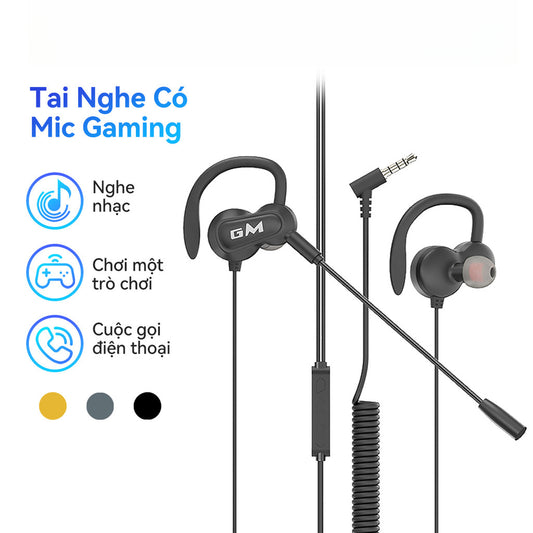 Tai Nghe Kẹp Tai Gaming Có Dây 3.5mm Mic Cho Điện thoại Máy Tính Stereo Âm Bass Chống Ồn