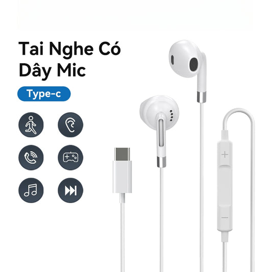 Tai Nghe Type-C Có Dây Mic Cho i15 Nhét Tai Stereo Lượng Cao Phụ Kiện Điện Thoại Gaming