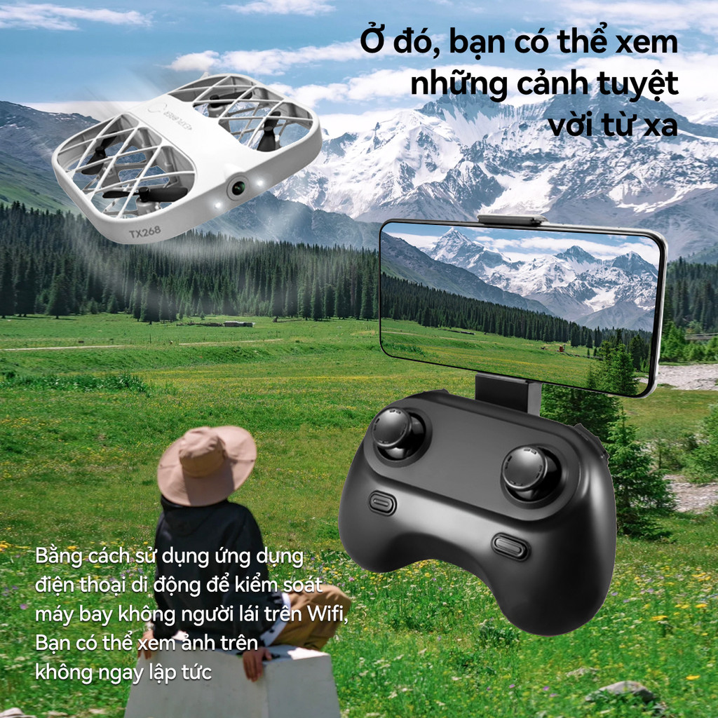 Các chức năng nổi bật: Điều khiển từ xa không dây 2.4G, lật 360 độ, cuộn đóng thế, bảo vệ lưới, chống va chạm toàn diện, điện thoại di động WIFI truyền hình ảnh thời gian thực